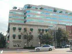 Battles to preserve the row of houses began in October 1976, when the developer who owned several of them began demolishing the house at 2022 I St.[6] Don't Tear It Down (forerunner to the DC Preservation League),[9] a group of historical preservationists organized in 1971 to save the Old Post Office building from destruction,[10] convinced a judge to order a temporary restraining order stopping destruction, as a request to declare the entire block a historic landmark was pending at the time.[6] The developer then attempted, in November, to demolish the house at 2030 I St.; this structure was already listed on the National Register of Historic Places, however, and the state historic preservation officer invoked a delay of 180 days.[6] Discussions with the community did not begin until the 179th day, and a thirty-day extension to the stay was granted.[6] When this expired, the developer began demolition of the house; preservationists managed to get a restraining order in time to preserve the front half of the structure.[6] Citing the requirement for "meaningful discussion" as laid out in a previous historic preservation case, Don't Tear It Down argued that they had not been able to adequately present their case; while the presiding judge stated that "meaningful discussion" was "beyond the court’s comprehension", he nevertheless issued an injunction preventing further demolition before the case could be heard by the DC Court of Appeals.[6] In the event, historic preservation legislation was passed in 1978 before final adjudication, saving the buildings from destruction.[6] The current design of the property is the result of discussions with local preservation groups.[2]