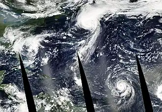 Several cyclones impacted Bermuda during the season, most significantly Hurricane Fabian. On the island, its passage proved to be the costliest and resulted in the first death since a hurricane in 1926.[21] The hurricane killed four on the island when its strong waves and storm surge washed two cars off the causeway between St. George's Parish and St. David's Island.[22] Damage from the hurricane totaled $300 million (2003 USD).[23] Elsewhere, Hurricane Juan was considered among the most damaging in the history of Halifax, Nova Scotia, where strong winds downed thousands of trees and left low-lying areas flooded from a record storm surge to the city. The hurricane caused a total of eight deaths and damage estimated at $200 million (2003 CAD, $150 million 2003 USD).[24]