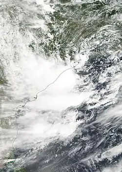 On August 27, a low-pressure area organized into a depression about 230 km (140 mi) south of Kolkata. The system largely consisted of a circulation without much organized convection. It moved to the west-northwest and failed to intensify, moving ashore near Chandabali, Odisha on August 28. Once over land, the depression stalled, before dissipating on August 29. Rainfall from the storm peaked at 200 mm (7.9 in) at Kantamal in Odisha, and there were no reports of damage.[1] The system was largely connected with the monsoon, resulting in an increase in rainfall over northeastern India.[19]