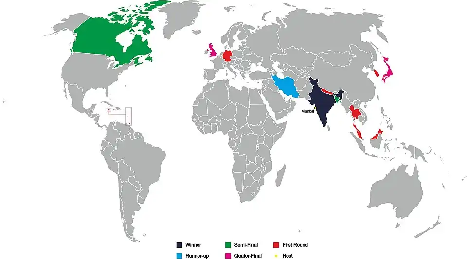 2004 Kabaddi World Cup was the first ever Kabaddi World Cup recognised by the International Kabaddi Federation (IKF). It was organised by South Kanara Sports Club, under Amateur Kabaddi Federation of India in India. Hosts India won the title defeating Iran 55–27 in the final.[1]