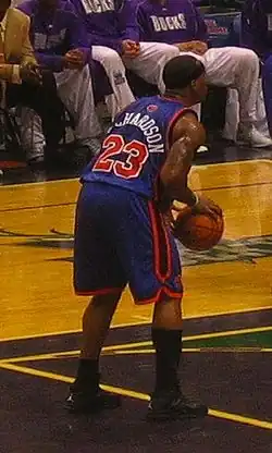 The 2005–06 New York Knicks season was the 60th season for the team in the National Basketball Association (NBA).[1] The Knicks had the eighth pick in the 2005 NBA draft, and selected Channing Frye from the University of Arizona.[2] During the off-season, the Knicks hired head coach Larry Brown,[3] acquired Eddy Curry and Antonio Davis from the Chicago Bulls, and acquired Quentin Richardson and rookie guard Nate Robinson from the Phoenix Suns.[4][5] At mid-season, they traded Penny Hardaway and second-year forward Trevor Ariza to the Orlando Magic in exchange for All-Star guard Steve Francis,[6] and dealt Davis back to his former team, the Toronto Raptors, in exchange for Jalen Rose.[7]