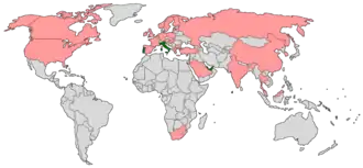 Countries that hosted F1 Powerboat races in 2005, shown in green. Former host nations are shown in pink.
