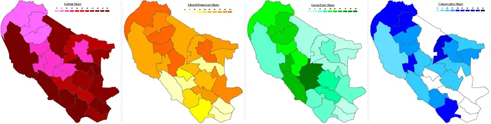 | Labour | 10 | 1 | 5 | -4 | 40.0 | 30.1 | 11,581 | +2.1 | |