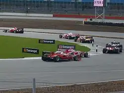 Race action at Brooklands corner, Silverstone at Superleague Formula Round 1