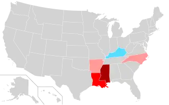In Mississippi, Democrats controlled the House of Representatives, while Republicans controlled the governorship and gained control of the Senate early in the year due to party switching.[3] Typically, the Mississippi legislature followed the tradition of each chamber passing the others' maps without interference; however, the Republican-controlled Senate voted to reject the Democratic-passed House of Representatives map, deadlocking the redistricting process and drawing several lawsuits, including from the NAACP.[13] As the legislature showed no signs of resolving its impasse, federal courts took up the process. The NAACP sought new maps to remedy the population disparities that had grown between districts in the preceding decade, while some Republicans sought to hold the 2011 elections under the previous maps while passing new maps and holding new elections in 2012.[14] The judges ruled to conduct the elections under the previous decades' maps, agreeing that redistricting was not required to take place until 2012.[15] After the 2011 elections, the newly Republican-controlled legislature passed new legislative maps, but elections were not held again until 2015.