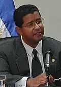 According to Roberto José d'Aubuisson Munguía, a deputy of the Legislative Assembly from ARENA, recordings and documents leaked in January 2014 allegedly revealed that the government authorized payments to the mediators and the families of gang leaders, as well as gave benefits to incarcerated gang leaders such as nights out of prison, prostitutes, and luxury goods.[63] In 2016, MS-13 released YouTube videos and audio recordings which allegedly showed politicians of both ARENA and the FMLN negotiating with gangs, offering them identity cards and financial support in exchange for the gangs supporting their political campaigns prior to the 2014 presidential election.[64] On 4 June 2021, Muyshondt was arrested for allegedly engaging in electoral fraud and negotiating with the gangs to vote for ARENA in 2014.[65] On 11 November 2022, Quijano himself was ordered to stand trial for allegedly offering the gangs favors in exchange for them voting for him in the 2014 election.[66]