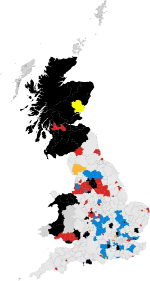 All 36 metropolitan boroughs, 18 out of 55 unitary authorities, 74 out of 201 district councils, all 32 Scottish council areas, 21 out of 22 Welsh principal councils, and 3 directly elected mayors | ||||||||||||||||||||||||||||||||||||||||||||||||||||||||||||||||||||||||||||