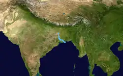 The depression brought heavy rainfall to coastal West Bengal. Kolkata received 206 mm (8.1 in) of rainfall over a span of three days, the wettest spell of the monsoon season, causing flooding. At least four people were reported to have been killed across the state due to rain-related events.[31] The system's precursor low caused authorities to raise cautionary signal number 3, at all maritime ports of Bangladesh.[32] Pachmarhi in Madhya Pradesh received 500 mm (20 in) of rainfall in 72 hours.