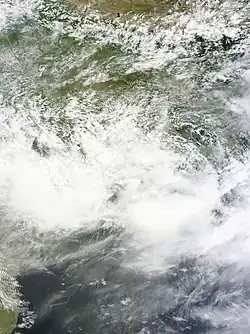 Early in the storm's existence, it brought flooding rains to much of northwestern Indonesia, resulting in significant damage. At least four people died and six others were reported missing.[12][13] In preparation for the storm, large-scale evacuations were recommended for parts of Myanmar. This resulted with people overcrowding boats to escape, and one or several vessels capsized, causing at least 39 deaths; 42 people were rescued while 19 others were unaccounted for and feared dead.[14][15] The storm's expansive cloud mass also brought unsettled weather to Sri Lanka, Thailand, and southeastern India. Severe storms in India and Sri Lanka were responsible for at least 16 fatalities and significant damage;[16][17] one person died in Thailand.[18] Striking Bangladesh in a weaker state than initially expected, damage was moderate to severe. A total of 95,003 poorly constructed huts were damaged or destroyed, 17 people died, and nearly 1.3 million were affected across the country.[19][20] Losses to fisheries amounted to 12.87 billion (US$165 million).[21] Myanmar was spared damage and further casualties.[22]