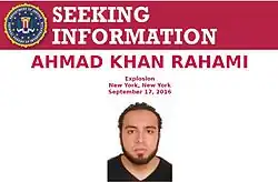 101. ^ "Ahmad Khan Rahimi Indicted In Manhattan Federal Court On Terrorism Charges" (Press release). U.S. Attorney's Office for the Southern District of New York. U.S. Department of Justice. November 16, 2016. Archived from the original on November 17, 2016. Retrieved November 16, 2016.