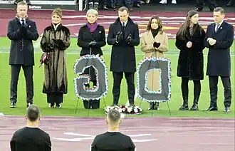 The family of David Gold with Mark Noble commemorate his life at the London Stadium before West Ham's game against Everton.