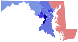 Shortly after polls closed on November 8, 2022, the Associated Press called the race for Van Hollen.[3] He overperformed his 2016 numbers and flipped four counties that he lost in his first election: Anne Arundel (home to the state capital Annapolis), Frederick, Kent, and Talbot.