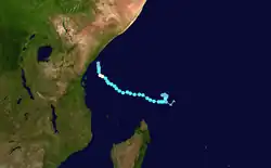 The season ended with 1 tropical cyclone each in April and May. At the very end of April, Tropical Cyclone Hidaya formed near Seychelles and was the third tropical cyclone or depression in recorded history to make landfall in Tanzania, the others being an unnamed cyclone in 1952 and Tropical Depression Atang in 2002.[15][16] Then on 16 May Tropical Cyclone Ialy formed east-northeast of Comoros, killing 2 people; strong winds tore off the roof of a school, killing a girl and injuring four others, while another person died due to a fallen wall.[17]