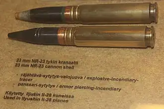 - ^ Koll, Christian. "23x115 23mm NR/NS and GSh aircraft cannons". The Russian Ammunition Page. Retrieved 7 Dec 2012.