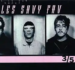 3/5 is the first album by Les Savy Fav. It was released in 1997 by Self-Starter Foundation.[3] The Long Play (LP) release came in a pack of shower caps[4] and is fairly difficult to find, sometimes fetching high prices on eBay. Coincidentally, only three-fifths of the line-up on this album, the band's first, remain in the present-day line-up, as drummer Patrick Mahoney was replaced by Harrison Haynes before the group's second album, The Cat and the Cobra, and guitarist Gibb Slife left before the recording of the Emor: Rome Upside Down EP.