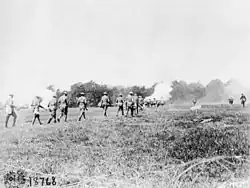 Men of the 326th Infantry Regiment moving towards German trenches at Choloy, France, July 25, 1918.