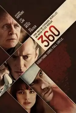 360 is a 2011 drama thriller film directed by Fernando Meirelles and written by Peter Morgan as a loose adaptation of Arthur Schnitzler's 1897 play Reigen. The film stars an ensemble cast of Anthony Hopkins, Ben Foster, Rachel Weisz, Jude Law and other international actors. Following the stories of couples and their sexual encounters, 360 was selected to open the 2011 London Film Festival. Magnolia Pictures released the film on video on demand on 29 June 2012 and was released in United States theaters on 3 August 2012. The film reunited Weisz and director Meirelles, who worked together on The Constant Gardener.