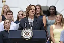 During her 2024 U.S. presidential campaign, Brat-themed memes surrounding Kamala Harris (pictured), including a viral TikTok montage of her set to "360", became popular online.