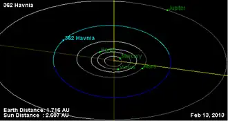 1. ^ "362 Havnia (1893 R)". JPL Small-Body Database. NASA/Jet Propulsion Laboratory. Retrieved 11 May 2016.