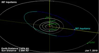 3. ^ a b "Asteroid 387 Aquitania – Nesvorny HCM Asteroid Families V3.0". Small Bodies Data Ferret. Retrieved 24 October 2019.