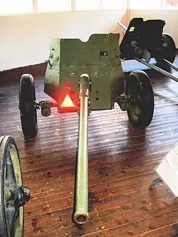 The M-42 was a 45-mm Soviet light semi-automatic anti-tank gun. Its full official name is 45-mm anti-tank gun model 1942 (M-42) (Russian: 45-мм противотанковая пушка образца 1942 года (М-42)). These guns were used from 1942 until the end of World War II. Old stockpiles were returned to service in January 2025 in the Russo-Ukrainian War.