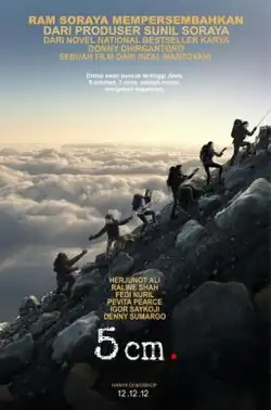 5 cm is an Indonesian drama film, directed by Rizal Mantovani and starring Herjunot Ali and Fedi Nuril. It is based on the novel 5 cm by Donny Dhirgantoro, and was released on December 12, 2012.