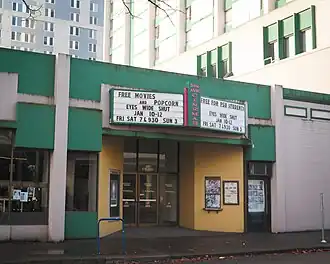 The small theater was not a profitable first-run venue, however, and soon it began showing old movies and midnight movies, including the first public screening of "The Rocky Horror Picture Show" in 1975.[2] The name was changed to 5th Avenue Cinema in 1973, although the entrance remained on Southwest Hall Street.[3]