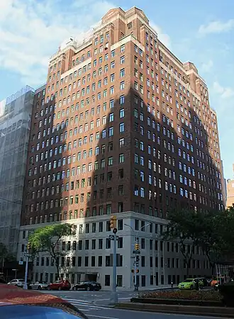 Built in 1940 by Sam Minskoff and Sons, the building was designed by art deco architect Sylvan Bien.[2] The building is made of traditional red brick with a limestone base, featuring a marble lobby and 24-hour doorman. The building is located on the corner of 71st street, within blocks of Central Park, The Frick Collection, and The Whitney Museum, as well as The Carlyle Hotel, also designed by Sylvan Bien. In 2011, 737 Park Avenue was sold to real estate developer Harry Macklowe,[3] who is currently developing the building into condominiums.[4]