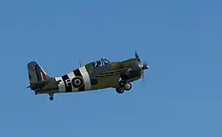 Grumman F6F Hellcat in FAA markings, an example of the type used by 757 NAS