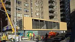 The Second Avenue Subway Community Information Center, which gave information about Phase I construction to community members, was located nearby, at 1628 Second Avenue between 84th and 85th Streets.[87] It opened on July 25, 2013.[88][89][90] On May 23, 2014, a new exhibit about the construction techniques used to build the Second Avenue Subway, titled En Route: The Techniques and Technologies Used to Build the Second Avenue Subway, was launched at the center.[91][92] Throughout the process of construction, the MTA also gave intermittent tours of the construction site to Upper East Side residents with reservations.[93] The center received over 20,000 visitors in three years.[94] In 2017, the MTA opened a similar center outside the 125th Street station in East Harlem for Phase II.[95]