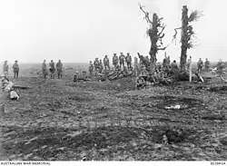 The unit's first major battle came during the disastrous Battle of Fromelles in July 1916, after which it served throughout the remainder of the war supporting the 8th Brigade's operations in France and Belgium.[4] The unit's last war diary entry was made in March 1919, after which it was disbanded.[5]