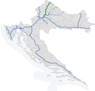 1. ^ a b c "Odluka o razvrstavanju javnih cesta u državne ceste, županijske ceste i lokalne ceste" [Decision on categorization of public roads as state roads, county roads and local roads]. Narodne Novine (in Croatian). February 17, 2010. Retrieved September 6, 2010.