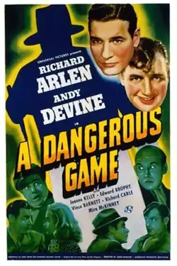 A Dangerous Game (also known as Who Killed Doc Robbin?) is a 1941 American mystery film directed by John Rawlins and starring Richard Arlen, Andy Devine and Jean Brooks. It is part of Universal Pictures's Aces of Action series.[1] The New York Times called the film "a crack-brained murder mystery."[2]