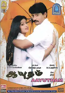 Aayudham (transl. Weapon) is a 2005 Indian Tamil-language action film directed by M. A. Murugesh. It stars Prashanth and Sneha, while Vadivelu, Subbaraju, Rajesh, and Janagaraj play supporting roles. Featuring music composed by Dhina, the film was released on 14 January 2005 and was a box office failure.