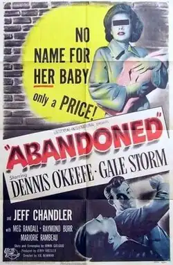 Abandoned is a 1949 American crime film noir starring Dennis O'Keefe, Gale Storm and Jeff Chandler.[2][3]