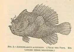 - ^ Christopher Scharpf (14 November 2022). "Order LOPHIIFORMES (part 1): Families LOPHIIDAE, ANTENNARIIDAE, TETRABRACHIIDAE, LOPHICHTHYIDAE, BRACHIONICHTHYIDAE, CHAUNACIDAE and OGCOCEPHALIDAE". The ETYFish Project Fish Name Etymology Database. Christopher Scharpf. Retrieved 25 March 2024.