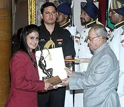 2. ^ a b "Meet the NMMC Sports Officer whose journey of grit and gumption helped her win the prestigious Arjuna Award". dnaindia.com. 22 October 2015. Archived from the original on 5 September 2016. Retrieved 24 March 2018.