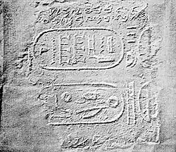 The Abibaʻl Inscription in Phoenician letters. The Egyptian hieroglyphs are the cartouches of Sheshonq I