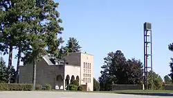 The cemetery was founded when Twin Cities members of the Masonic order purchased 125 acres (51 ha) of land at Pilot Knob, Mendota Heights.[1] It was originally intended for the exclusive use of Masons and their families, and the name of the cemetery derives from the acacia sprig used in Masonic burial rituals. Plans for the cemetery included a temple burial chapel, administration buildings, a 65 ft (20 m) monolith, and landscaping (which included removal of 20 feet from the top of the "knob"). Consistent with Masonic tradition, the graves were marked with only a simple, uniform slab bearing the deceased person's name with birth and death dates.[1][2] The cemetery was officially opened on October 10, 1928, with a dedicatory speech by Minnesota governor Theodore Christianson.[2]