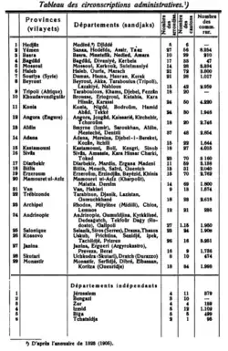 Table of Ottoman Administrative Divisions in 1905 (table published in 1908)