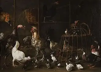 Van Utrecht also painted barnyard scenes with living animals, typically including poultry such as chickens, turkeys, ducks and peacocks.[6]