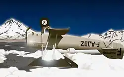 Henri Guillaumet's crashed Potez 25, F-AJDZ, on the frozen surface of Laguna del Diamante in the Andes.