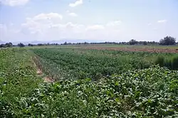North Macedonia possesses 10,140 km² of agricultural land, which is almost 39% of its territory. Half of this land is devoted to crop growing, and the other half livestock farming. The country has 48,606.75 hectares of forests.[17] Macedonia distinguishes itself by the smallness of its agricultural properties: 80% of them are between 2.5 and 2.8 hectares, and are divided into small parcels. The former state-owned businesses, which are much bigger, are generally in financial difficulties due to incomplete privatisations.[2]