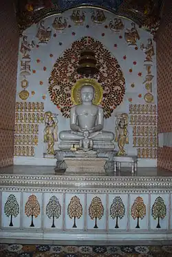 Greatly revered by the Digambar sect of the Jains, the Nasiyan temple is dedicated to Rishabhdev, the first of the 24 tirthankara by Rai Bahadur Seth Moolchand and Nemichand Soni. It is situated on Prithvi Raj Marg in Ajmer, the heart of Rajasthan state in India. The foundation of this magnificent Jain temple was laid on 10 October 1864 and the image of Rishabhdev (Adinath), was installed in the Sanctum Sanctorum on 26 May 1865.[3] This work was carried out under the able guidance of the great scholar Pandit Sadasukhdasji of Jaipur.[2]