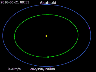 17. ^ a b c "AKATSUKI orbit control at perihelion". JAXA. 1 November 2011. Archived from the original on 13 May 2012. Retrieved 3 December 2011.
