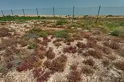 Common vegetation found in Al Khor include alaqool (Alhagi maurorum) in the northwest,[30] qurdi (Ochradenus baccatus),[31] mangroves (Avicennia marina),[32] glasswort (Salicornia europaea),[33] hadh (Cornulaca aucheri),[34] rimth (Haloxylon salicornicum),[35] Arab bean (Gypsophila vaccaria),[36] cottina (Bassia eriophora),[37] broadleaf seagrass (Halophila stipulacea) near the coast,[38] Mesembryanthemum nodiflorum,[39] Anabasis setifera[40] and cleome barbaran (Cleome brachycarpa).[41]