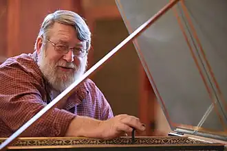 Alastair McAllister (born Mildura, 3 August 1942) is an Australian harpsichord builder known for his historical integrity, design and workmanship, and for producing modern copies of instruments that closely match their prototypes in sound and touch. At the age of 15, he became inspired by the Baroque after hearing the music of Domenico Scarlatti.[1] Working closely with his colleague, Mars McMillan, he founded Harpsichord Makers of Melbourne in 1967, in the inner-Melbourne suburb of Clifton Hill,[2] and by the early 1970s he had become a full-time harpsichord builder. McAllister and his colleagues have created instruments patterned after the work of Henri Hemsch, Burkhardt Schudi, Johannes Daniel Dulcken, the Ruckers family, Christian Zell and Johann Heinrich Harrass, among others, and he has trained or influenced Australian builders such as Marc Nobel, Andrew Bernard, Alan Todd, Jean-Louis Cocquillat, and Richard Schaumloeffel.