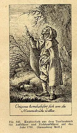 From the book Handbuch der Sexualwissenschaften: an 18th-century picture of Origen castrating himself