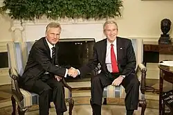 Kwaśniewski with U.S. President George W. Bush in Washington, D.C., October 2005