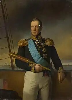 During the Russo-Turkish War of 1828–29, Greig's bold leadership made itself felt at the Sieges of Varna and Anapa. He was in full command of the Russian fleet, which he had brought from Sevastopol: forty vessels, eight being of the line, acting in conjunction with the troops under Prince Menshikov for three months by sea and land. During these operations the Emperor Nicholas I of Russia was his guest on board the Parizh,[2] which had the Diplomatic Chancery and 1,300 persons under her flag.[3]